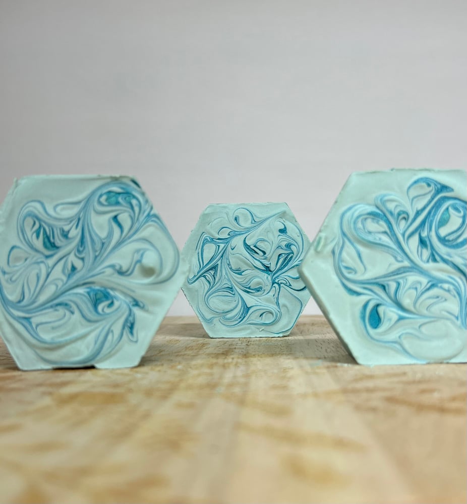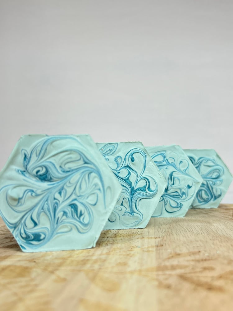 Neptune is a rather serpentine in its design as a bar. This bar certainly leaves a lasting impression! Anyone who has a love for all things sweet, you’re sure to find this a delectable addition to your bundle of soaps! Topped with intricate surface designs creates depth to the otherwise visually simple bar.